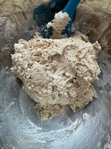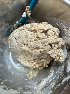 Add the egg and buttermilk and mix into a dough. [Note: the hand mixer was not ideal here, but my daughter insisted...learn from us]